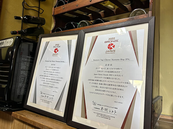 この場所で、この環境で、すごくよかったと思っています。自分のやりたいこととうまく融合できたと思います。 ※NPOチーズプロフェッショナル協会(東京都)主催の国産ナチュラルチーズの全国コンテスト「ジャパンチーズアワード2022」にて、自家栽培のサンショウの実で作ったジャムをチーズの中に入れ込んだ「Kumano Sansho」がオープンカテゴリー部門で銀賞、自家栽培のホップをまぶした「Kumano Hop IPA」がソフト/バラエティ部門で銅賞に選ばれた